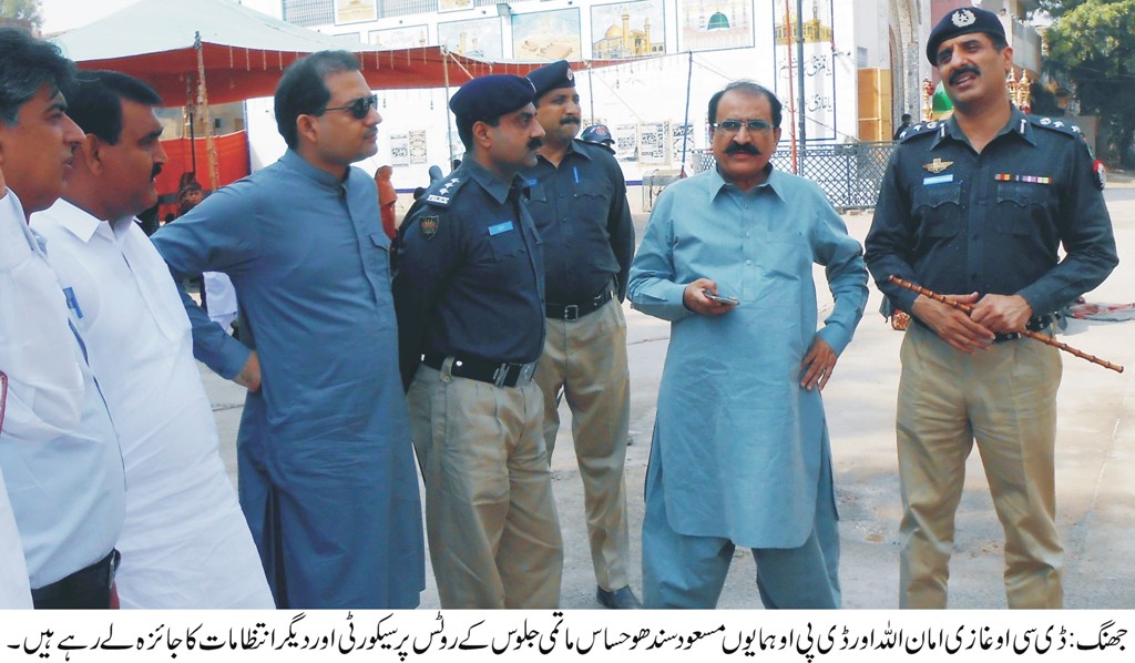 جھنگ (ڈسٹرکٹ رپورٹر) ڈسٹرکٹ کوآرڈی نیشن آفیسر غازی امان اللہ نے ڈسٹرکٹ پولیس آفیسر ہمایوں مسعود سندھو اور ایڈیشنل ڈسٹرکٹ کلکٹرمحمد اویس ملک اور دیگر متعلقہ افسران کے ہمراہ ساتویں محرم الحرام کے سیکورٹی کے لحاظ سے حساس ترین علم ، تعزیہ اور ذوالجناح کے ماتمی جلوس کے روٹ اور دیگر انتظامات کا جائزہ لیا۔ اس موقع پرڈی سی او کو بتایا گیا کہ سات محرم الحرام کے روز حساس ترین ماتمی جلوس امام بارگاہ مہاجرین ریلوے روڈ جھنگ سٹی سے برآمد ہوکرمختلف روایتی راستوں سے گزرتا ہوا نماز مغرب سے قبل امام بارگاہ قدیمی تانگہ اڈا جھنگ سٹی میں اختتام پذیر ہو گا۔ اس موقع پر ٹی ایم اے کے افسران کی طرف سے بتایا گیا کہ جلوس کے راستوں میں حائل رکاوٹوں اور تجاوزات وغیرہ کو ختم کر روٹ کلیئر کرنے کے علاوہ صفائی ستھرائی کے کام کو بھی ہنگامی بنیادوں پر مکمل کیا جا چکاہے۔پولیس افسران کی طرف سے بتایا گیا کہ مذکورہ جلوس کی حساسیت کے پیش نظر سیکورٹی کے انتہائی سخت اور فول پروف انتظامات کئے گئے ہیں اورجلوس کے تمام راستوں پر سینکڑوں مسلح سیکورٹی اہلکار نہ صرف چوکس رہیں گے بلکہ جلوس کے منتظمین اور رضاکاروں کے تعاون سے جلوس میں چیکنگ کے بعد ہی شرکاء کو جلو س میں داخل ہونے کی اجازت دی جائیگی اس ضمن میں میٹل ڈیڈیکٹراور واک تھرو گیٹس کا بھی استعمال کیا جائیگا۔انہوںنے مزید بتایا کہ جلو س کی نقل و حرکت کو سی سی ٹی وی کیمروں کی مدد سے مانیٹر کیا جائیگا۔ڈی سی او غازی امان اللہ نے سیکورٹی اور دیگر انتظامات پر اطمینان کا اظہار کرتے ہوئے کہا کہ وہ ڈی پی او ہمایوں مسعود سندھو کے ہمراہ جلوس کی مانیٹرنگ اور سیکورٹی کا موقع پر جائزہ لینے کیلئے خو د پہنچے گے۔ مزید برآں ڈی سی او نے پولیس اور قانون نافذ کرنے اہلکاروں کے ڈیوٹی کے جذبہ ،عوام اور تمام مکاتب فکر کے علمائے کرام کے انتظامیہ اور پولیس کے تعاون کو مثالی قرار دیا۔