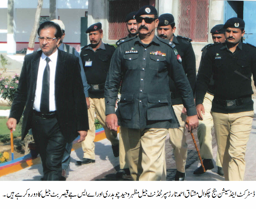 پنڈدادنخان (سلیمان شہباز+عدنان یونس سے) ڈسٹرکٹ اینڈ سیشن جج جہلم محمد یوسف اوجلہ، ڈسٹرکٹ اینڈ سیشن جج چکوال مشتاق احمد تارڑ اور سپرنٹنڈنٹ جیل وحید احمد چوہدری نے ڈسٹرکٹ جیل جہلم کا دورہ کیا۔ جیل کے دورہ کے دوران قیدیوں کے مسائل سنے او ران کے فوری حل کرنے کے لئے احکامات جاری کئے ، جیل میں سیکورٹی اور کھانے کے معیار کو تسلی بخش پایا۔ اس موقع پر دونوں جج صاحبان نے شجر کاری کو فروغ دینے کے لئے جیل میں پودے لگائے اور قیدیوں کی فلاح کے لئے اٹھائے جانے والے اقدامات اور صفائی کے معیار کو سراہا۔