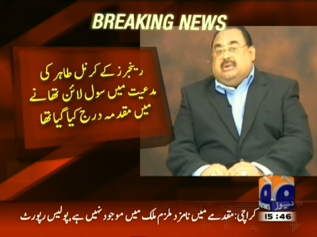 کراچی انسداد دہشتگردی کی عدالت نے الطاف حسین کو اقدام قتل کے مقدمے میں مفرور قرار دے دیا، رینجرز کے کرنل طاہر کی مدعیت میں سول لئن تھانے میں مقدمہ درج کیا گیا تھا، مقدمہ میں نامزد ملزم ملک میں موجود نہیں ہے، پولیس رپورٹ۔
