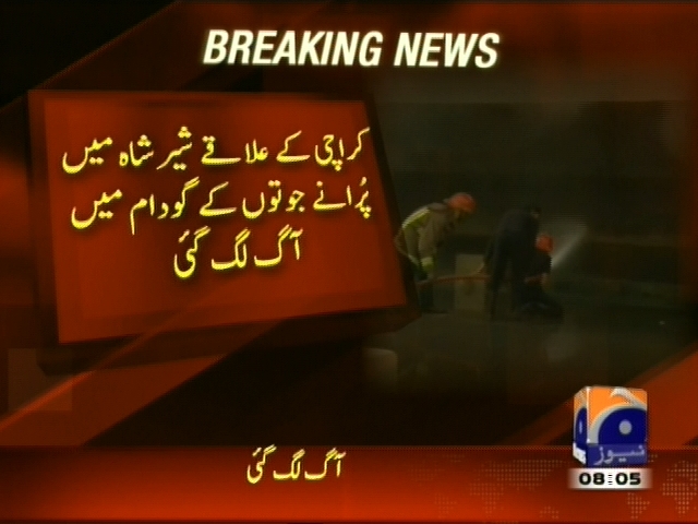 کراچی کے علاقے شیر شاہ میں پرانے جوتوں کے گودام میں آگ لگ گئی، آگ نے گودام کے بڑے حصے کو لپیٹ میں لے لیا، فائربریگیڈ کی 12 گاڑیاں اور 2 باوزر آگ پر قابو پانے میں مصروف۔
