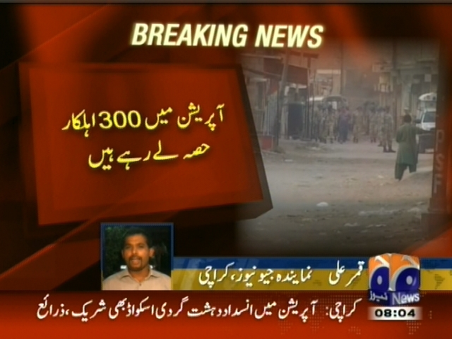 کراچی:بنارس میں رینجرز کا ٹارگیٹڈ آپریشن۔آپریشن میں تین سو اہلکار حصہ لے رہے ہیں۔ علاقے کے تمام داحلی اور خارجی راستے بند، گھر گھر تلاشی جاری۔