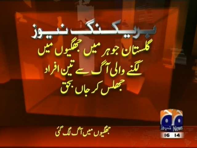 کراچی : گلستان گوہر بلاک 2 میں جھونپڑیوں میں آگ لگ گئی، آگ پر قابو پانے کیلئے فائر ٹینڈر روانہ، فائر برگیڈ حکام، گلستان جوہر میں جھگیوں میں لگنے والی آگ سے تین افراد جھلس کر جاں بحق، متعدد افراد کے زخمی ہونے کی اطلاع۔