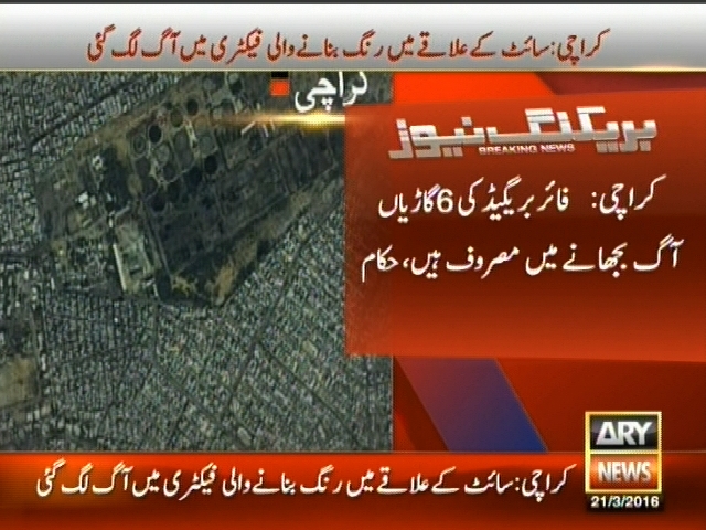 کراچی : سائٹ کے علاقے میں رنگ بنانے والی فیکٹری میں آگ لگ گئی، فائربریگیڈ کی 6 گاڑیاں آگ بجھانے میں مصروف ہیں، حکام۔