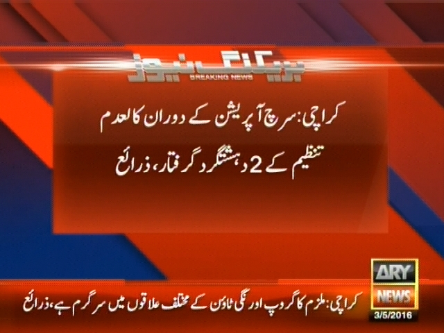 کراچی: سیکیورٹی ادارے کا پاکستان بازار اور اورنگی ٹاون میں سرچ آپریشن، کراچی: سرچ آپریشن کے دوران کالعدم تنظیم کے 2 دہشتگرد گرفتار، ذرائع۔