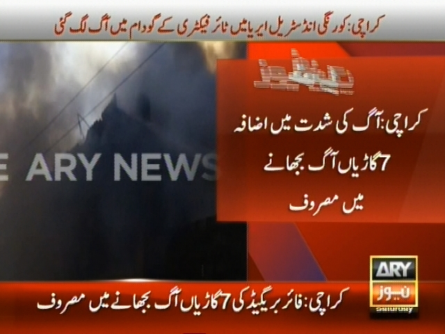 کراچی: کورنگی انڈسٹریل ایریا میں ٹائر فیکٹری کے گودام میں آگ لگ گئی، آگ کی شدت میں اضافہ 7 گاڑیاں آگ بھجانے میں مصروف۔