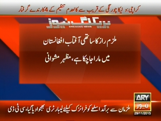 کراچی: ولیکا چورنگی کے قریب سے کالعدم تنظیم کے 4 کارندے گرفتار، ملزمان میں محمد عمران، محمد رحیم، تاج محمد اور را محمد شامل، ملزم راز کا ساتھی آفتاب افغانستان میں مارا جا چکا ہے، مظہر مشوانی۔