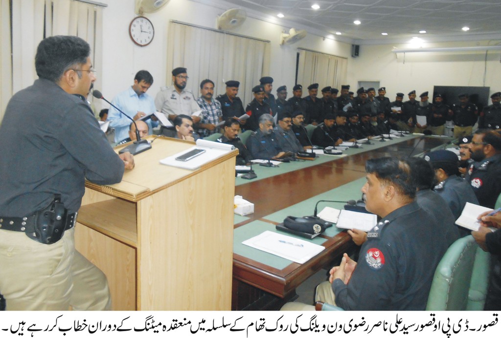 قصور(بیورورپورٹ)ون ویلنگ جیسے خونی کھیل کو نہ روکنے والے پولیس افسران خود کو کسی رعایت کے مستحق نہ سمجھیں ایسے پولیس افسران کے خلاف سخت سے سخت محکمانہ کاروائی عمل میں لائی جائے گی ان خیالات کا اظہار ڈی پی اوقصور سید علی ناصررضوی نے گزشتہ روز اپنے آفس میں ون ویلنگ کی روک تھام کے سلسلہ میں منعقدہ میٹنگ سے خطاب کرتے ہوئے کیا اس موقع پر ڈی ایس پی سٹی عبدالقیوم گوندل ،ڈی ایس پی صدر مرزا عارف رشید ،ڈی ایس پی چونیاں عبدالقدوس بیگ ،ڈی ایس پی پتوکی علی اختر انصاری ،ڈی ایس پی ہیڈکوارٹر حسن دانیال بشیر ،ڈی ایس پی پٹرولنگ،ڈی ایس پی ٹریفک ،ضلع بھر کے ایس یچ اوز ،انچارج چوکی پٹرولنگ پوسٹ ،سرکل انچارج ٹریفک اور دیگر پولیس افسران بھی موجود تھے میٹنگ کے دوران ڈی پی اوقصور نے کہا کہ ون ویلنگ کرنے افرادکے خلاف سخت ترین کریک ڈاؤن کرتے ہوئے قانونی کاروائی عمل میں لاکر حوالات میں بند کیا جائے جبکہ کم عمر موٹرسائیکل سواروں کی موٹرسائیکلیں بند کر کے والدین کی ضمانت لیکر پھر کم عمر بچوں کوحوالے کیا جائے۔انہوں نے کہا ون ویلنگ کیلئے موٹرسائیکل تیار کرنے والے مکینک کے خلاف بھی قانونی کاروائی کی جائے گی انہوں نے کہا محافظ فورس کے ساتھ ساتھ ہر تھانہ سے موٹرسائیکل سکواڈ نکالیں جو مین شاہراہوں پر گشت کریں گے اس کے علاوہ ضلع بھر کے تما داخلی و خارجی راستوں پر زگ زیگ مضبوط ناکہ جات لگائے جائیں گے ناکہ جات کے علاوہ ون ویلنگ کی روک تھام کیلئے سپیشل ڈیوٹی پلان بھی تشکیل دیاجائے گا انہوں ٹریفک اور پٹرولنگ پولیس کو حکم دیا کہ آپ اپنے علاقہ حدود کے اندر ون ویلنگ کے نقصانات کے سلسلہ میں آگاہی واک کے ساتھ ساتھ تیز رفتار موٹرسائیکل سوار،ون ویلرز اور کم عمر موٹرسائیکل سواروں کے خلاف کریک ڈاؤن کریں انہوں نے کہا کہ ون ویلنگ خونی کھیل ہے اس لیے ضلع قصور میں کسی صورت بھی ون ویلنگ نہیں ہوگی اگرکسی روڈ پر ون ویلنگ کی شکایت ملی تو متعلقہ ایس ایچ او کے ساتھ ساتھ سرکل افسر کے خلاف بھی سخت سے سخت محکمانہ کاروائی عمل میں لائی جائے گی ۔ڈی پی اوقصور نے تمام ایس ایچ اوز کو ہدایت کی کہ ون ویلنگ کے تحت درج ہونے والے مقدمات کے چالان تین یوم کے اندر عدالت میں بھجوائیں تاکہ ون ویلنگ میں ملوث افراد کو سخت سے سخت سزا دلائی جا سکے۔