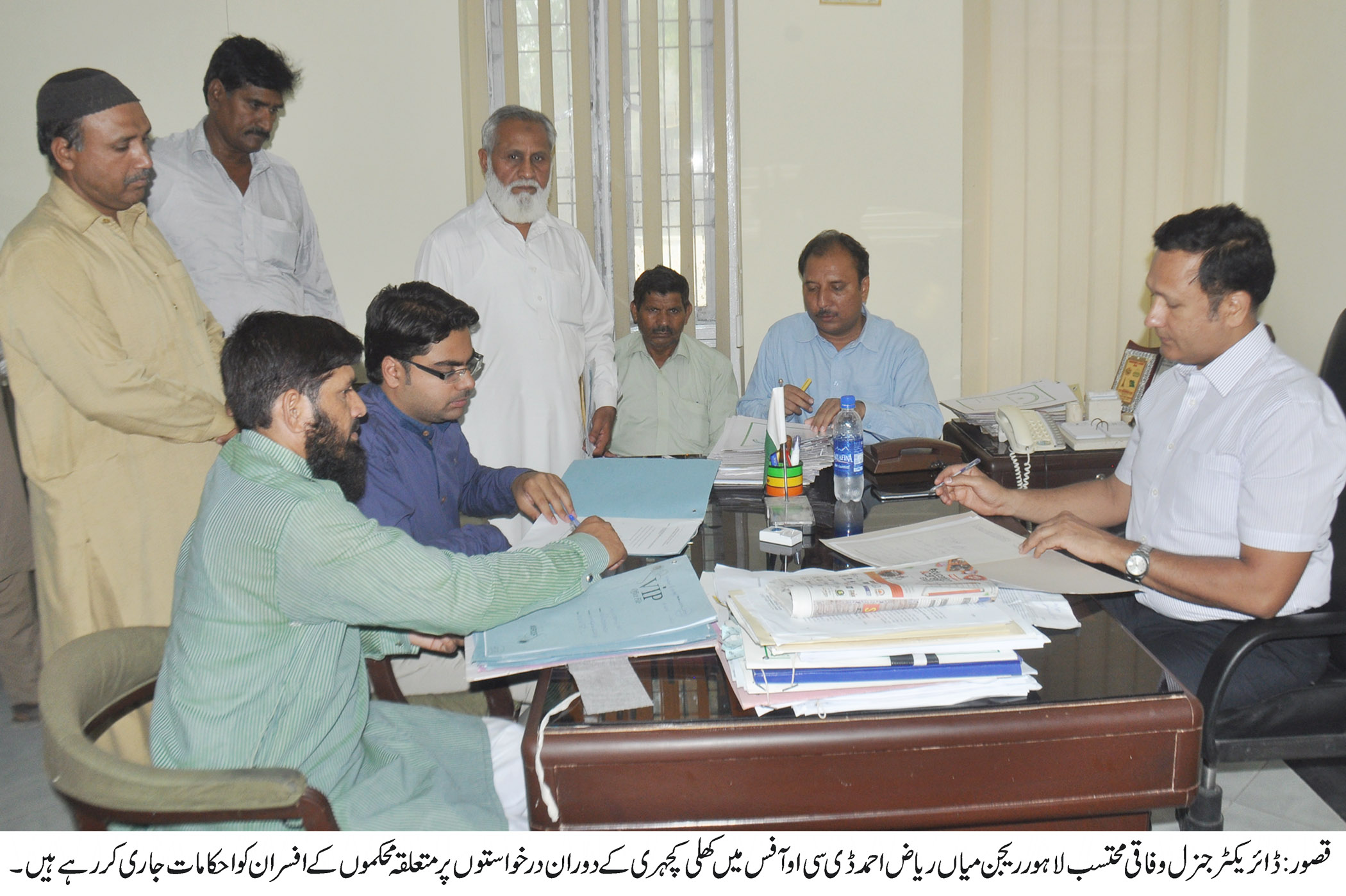 قصور (بیورورپورٹ) وفاقی محتسب اعلیٰ کے حکم پر ڈائریکٹر جنرل انسویسٹی گیشن آفیسر وفاقی محتسب لاہور ریجن میاں ریاض احمد کی ڈی سی او آفس قصور میں کھلی کچہری ‘وفاقی محکموں کیخلاف شکایات سنیں اور انکے حل کیلئے احکامات جاری کئے ۔ تفصیلات کے مطابق ڈائریکٹر جنرل انویسٹی گیشن آفیسر وفاقی محتسب اعلیٰ لاہور ریجنل میاں ریاض احمد نے محکمہ کے دیگر افسران محمد احسان اور محمد نعیم اشرف کے ہمراہ گزشتہ روز ڈی سی او آفس میں کھلی کچہری لگائی اوروفاقی محکموں جن میں واپڈا ، سوئی گیس ، نادرا، پوسٹ آفس ، پاسپورٹ آفس ، بے نظیر انکم سپورٹ پروگرام ، علامہ اقبال اوپن یونیورسٹی ، اوورسیز پاکستانیز اور اسٹیٹ لائف انشورنس کار پوریشن آف پاکستان کیخلاف عوامی شکایات سنیں اور انکے فوری حل کیلئے متعلقہ محکموں کے سربراہان کو احکامات جاری کئے ۔اس موقع پر انہوں نے افسران کو حکم دیا کہ وہ عوامی مسائل کو فوری طور پر حل کریں اور لوگوں کو زیادہ سے زیادہ سہولیات مہیا کی جائیں کیونکہ عوامی خدمت سرکاری افسران کا اولین فرض ہے اور اس میں سستی و کوتاہی برداشت نہیں ہوگی۔