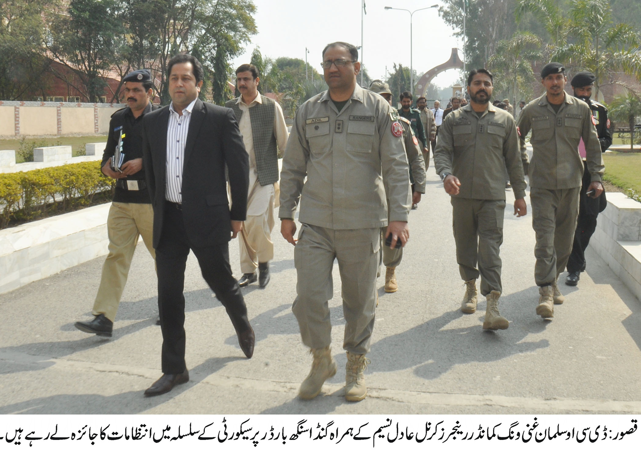قصور(محمد عمران سلفی سے)ڈی سی او قصور سلمان غنی اور ڈی پی او سید علی ناصر رضوی کا سیکورٹی انتظامات کا جائزہ لینے کیلئے تحصیل پتوکی اور گنڈا سنگھ بارڈ کا دورہ ۔ تفصیلات کے مطابق ڈی سی او قصور سلمان غنی اور ڈی پی او سید علی ناصر رضوی نے گزشتہ روز تحصیل پتوکی میں سیکورٹی کے حوالے سے کئے گئے انتظامات کا جائزہ لینے کیلئے دورہ کیا ۔ انہوں نے یونیورسٹی آف ویٹرنری اینڈ اینمل پتوکی ،بلوکی پاور پراجیکٹ واں آدھن ، مختلف فیکٹریوں ،ٹراماسنٹر پھولنگر ، میڈیکل کالج، چلڈرن کمپلیکس پھولنگر اور دیگر مقامات کا دورہ کیا اور سیکورٹی کے حوالے سے کئے گئے انتظامات کا تفصیلی جائزہ لیا ۔ اس موقع پرانکے ہمراہ متعلقہ افسران بھی موجود تھے ۔ انہوں نے خاص طور پر مختلف پروجیکٹس اور فیکٹریوں میں کام کرنیوالے چائنز کی سیکورٹی کو چیک کیا اور متعلقہ افسران اور اداروں کے سربراہان کو حکم دیا کہ سیکورٹی کے حوالے سے مزید انتظامات بہتر کئے جائیں اور اس میں کسی قسم کی کوتاہی نہ برتی جائے ۔ علاوہ ازیں ڈی سی او سلمان غنی اور ڈی پی او سید علی ناصر رضوی نے ونگ کمانڈر رینجرز کرنل عادل نسیم کے ہمراہ گنڈا سنگھ بارڈر پر بھی سیکورٹی انتظامات کا تفصیلی جائزہ لیا۔