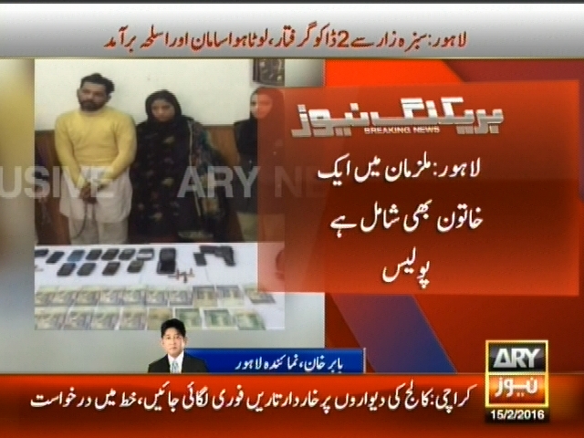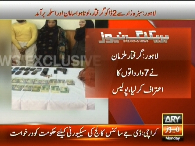 لاہور : سبزہ زار سے 2 ڈاکو گرفتار، لوٹا ہوا سامان اور اسلحہ برآمد، گرفتار ملزمان نے 7 وارداتوں کا اعتراف کر لیا، ملزمان میں ایک خاتون بھی شامل ہے، پولیس۔