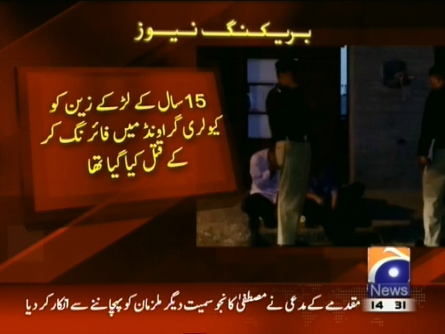 لاہور: انسداد دہشت گردی کی خصوصی عدالت میں زین قتل کیس کی سماعت، مقدمے کے مدعی نے مصطفی کانجو سمیت دیگر ملزموں کو ماننے سے انکار کر دیا، مدعی سہیل افضل نے تحریری بیان میں کسی ملزم کا نام نہیں لکھا، 15 سالہ لڑکے زین کو کیولری گرائونڈ میں فائرنگ کر کے قتل کیا گیا تھا، وقعہ ضرور دیکھا مگر ملزمان کے نام نہیں جانتا، مدعی افضل کا بیان۔