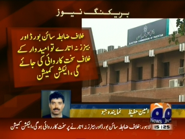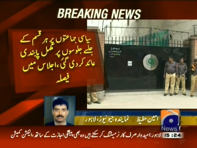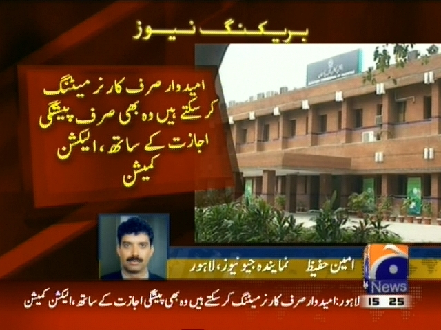 لاہور: بلدیاتی انتخابات میں ضابطہ اخلاق پر عمل درآمد کیلئے اجلاس، سیاسی جماعتوں پر ہر قسم کے جلسے جلوسوں پر مکمل پابندی عائد کر دی گئی، اجلاس میں فیصلہ، امیدوار صرف کارنر میٹنگ کر سکتے ہیں، وہ بھی صرف پیشگی اجازت کے ساتھ ، الیکشن کمیشن کی تمام ڈی سی اوز کو بلدیاتی امیدواران کے بڑے سائن بورڈز بینرز کل تک اتارنے کی ہدایت، خلاف ضابطہ سائن بورڈاور بینرز نہ اتارے تو امیدوار کے خلاف سخت کاروائی کی جائے گی، الیکشن کمیشن۔