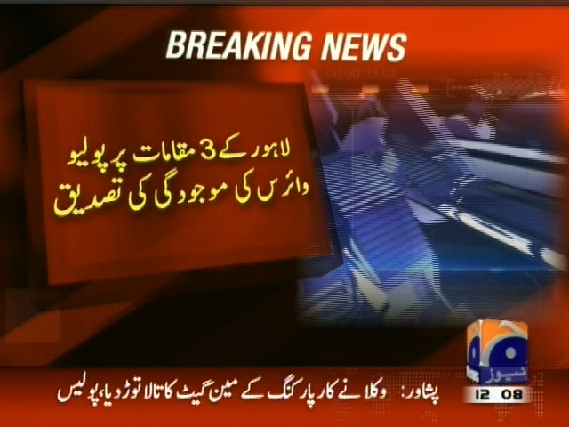 لاہور کے 3 مقامات پر پولیو وائرس کی موجودگی کی تصدیق، فال روڈ، کھاڑک نالہ اور شیرا کوٹ میں سیوریج کے نمونوں میں پولیو وائرس کی تصدیق ہوئی، محکمہ صحت۔