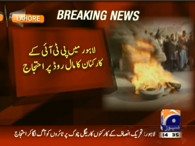 لاہور میں پی ٹی آئی کے کارکنان کا مال روڈ پر احتجاج۔