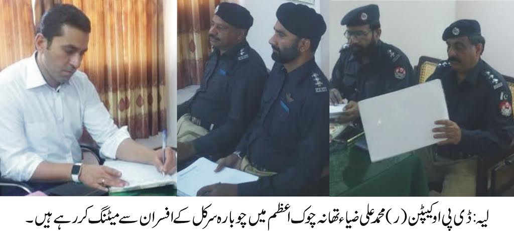 لیہ (محمد صدیق پرہار) جرائم پیشہ عناصر سے آہنی ہاتھوں سے نمٹا جائے، عوام کے جان ومال کے تحفظ کو یقینی بنانے کیلئے مئوثر اقدامات کئے جائیں ۔ڈی پی او کیپٹن (ر) محمد علی ضیاء کی پولیس افسران کو ہدایات۔ تفصیلات کے مطابق تھانہ چوک اعظم میں چوبارہ سرکل کے افسران سے منعقدہ میٹنگ میں ڈی ایس پی چوبارہ سرکل واجد علی بھروانہ، ایس ایچ او چوک اعظم انسپکٹرعبدالمجید ، ایس ایچ او چوبارہ انسپکٹر ذکی ریحان شریک ہوئے۔دوران میٹنگ سرکل کے زیر تفتیش مقدمات اور جرائم سمیت دیگرامور زیربحث لائے گئے۔ ڈی پی او نے افسران کوہدایت کرتے ہوئے کہا کہ جرائم پیشہ عناصر سے آہنی ہاتھوں سے نمٹاجائے شہریوں کی جان ومال ،عزت وآبروکی حفاظت کویقینی بنانے اور جرائم کی بیخ کنی کیلئے جرائم پیشہ عناصر کے گر دگھیرہ تنگ کیاجائے ۔انہوں نے مزید کہا کہ عوام کو احساس تحفظ دینے کیلئے بھرپور خدمات سرانجام دیتے ہوئے گشت وپڑتال کر کے عوام کے تحفظ کو یقینی بنانے کیلئے مئوثر اقدامات عمل میں لائے جائیں۔