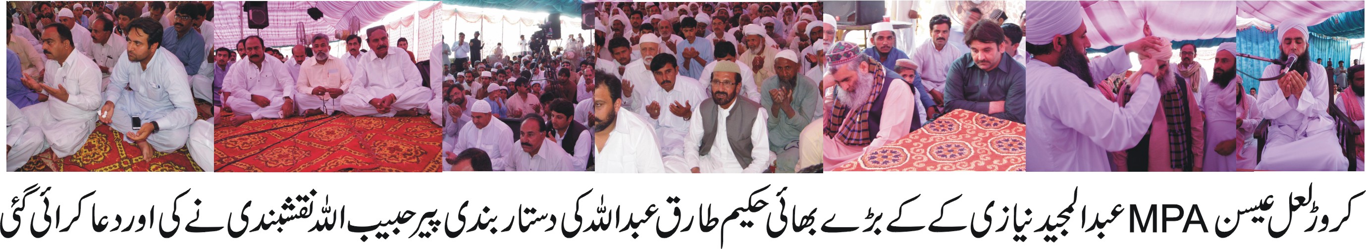 لیہ +کروڑلعل عیسن (نامہ نگار) اللہ کی راہ پر چلنے والا ہی فلاح پائے گا سعادت مند ہوتے ہیں وہ جو اس حقیقت کو سمجھتے ہیں موت شیر کی طرح ہمارا پیچھا کر رہی ہے اور قبر منہ کھولے بیٹھی ہے روزانہ اٹھنے والے جنازے اعلانات سبق ہیں اگر کوئی مرتبہ اور مقام کی بات ہوتی تو پھر حضورۖ یہ مزہ نا چکتھے اللہ تعالیٰ حاجی عبدالواحد خان نیازی کو جنت میں جگہ عطاء فرمائے ان خیالات کا اظہار پیر حبیب اللہ نقشبندی اور قاری اللہ نواز نے گزشتہ روز تحریک انصاف کے MPAحاجی عبدالواحد خان نیازی کی قرآن خوانی کے موقع پر کیا انہوں نے کہا والدین کا احترام ہم سب پر فرض ہے اگر والد کے فوت ہو جانے کے بعد بھی نصیحت کی ضرورت ہو تو ہماری زندگیوں کا کیا فائدہ ہمیں اپنا محاصبہ خود کرنا ہو گا اس سے پہلے کہ کوئی ہمارا محاصبہ کرے اللہ تعالیٰ کے بتائے ہوئے انہوں نے کہا قبروں کی زیارت کے لئے شہر خاموشاں میں جایا کرو اور مرنے والے کیلئے فاتح پڑھا کرو شائد کے عبرت مل سکے ہمیں نماز نفل اور قرآن کی تلاوت ہی مردہ کی بخشش کا سبب بن سکتی ہے قاری اللہ نواز نے کہا کہ وقت کا اتنا بڑا رئیس خالی ہاتھ چلا گیا ہم نے بھی خالی ہاتھ ہی جانا ہے حاجی عبدالواحد خان ایک عظیم انسان تھا سخاوت غریب پروری عاجزی اس شخص میں کوٹ کوٹ کر بھری ہوئی تھی انہوں نے کہا کہ سخی اللہ کا دوست ہوتا ہے ہمیں مرنے سے پہلے مرنے کی تیاری کرنی چاہیے آخر میں قرآن خوانی میں پیر حبیب اللہ نقشبندی حاجی عبدالواحد مرحوم کے بڑے بیٹے عبداللہ طارق خان کی دستار بندی کی حاجی عبدالمجید MPAنے حاضرین کا شکریہ ادا کرتے ہوئے کہا کہ میرے والد غریب پرور انسان تھے اُن کے لئے دعا کریں قرآن خوانی میں سابق گورنر و تحریک انصاف رہنما چوہدری محمد سرور ،MNAصاحبزادہ فیض الحسن،MNAجمشید دستی،سنیٹرسردار ظفراللہ خان ڈھانڈلا ،MPAمہر اعجاز اچلانہ ،MPAسردار قیصر خان مگسی،RPOسرگودھا شاہ نواز سندھیلا،سید غوث شاہ گیلانی،سابق صوبائی وزیر سردار سعید اکبر خان نوانی ،صدر انجمن تاجران طارق محمود پہاڑ،صدر بار سردار ذوالفقار علی خان،سردار غلام عباس خان ایڈوکیٹ ،MSڈاکٹر محبوب حسنین قریشی ،چئیرمین یونین کونسل چوہدری پرویز اختر ،فیروز علی خان،عمر علی اولکھ،ضلعی صدر PTIیاسر عرفات،پنجاب فٹبال فڈریشن کے صدر رانا محمد اشرف خان،سابق MPAملک عبدالشکور سواگ ،صفدر بھٹی،چوہدری الطاف حسین ،اطہر مقبول سمیت سینکٹروں افراد نے شرکت کی۔