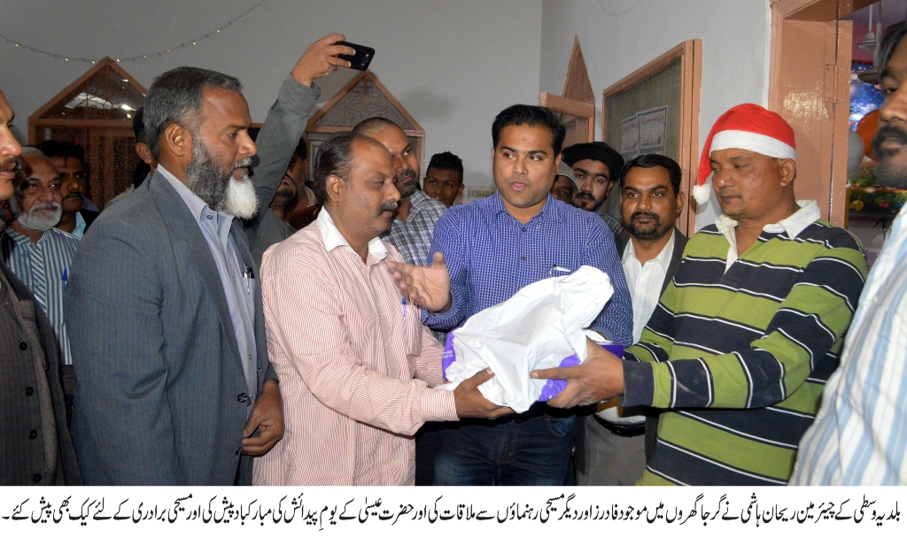 کراچی : چیئرمین بلدیہ وسطی ریحان ہاشمی نے وائس چیئرمین سید شاکر علی، ضلعی کونسل کے اقلیتی رکن الیاس کھوکر اور متعلقہ یوسی چیئرمین اور وائس چیئرمین کے ہمراہ بلدیہ وسطی میں واقع مسیحی برادری کے مختلف گرجاگھروں میں جاکر مسیحی برادری کو حضرت عیسیؑ کے یومِ پیدائش کی مبارکباد دی اور کیک پیش کئے۔ انہوں اس موقع پر کہا کہ بلدیاتی ادارے بلاتفریق رنگ و نسل و مذہب خدمات انجام دیتے ہیں بلدیہ وسطی میں بسنے والے تمام افراد چاہے کسی بھی مذہب و ملت نسل یا برادری سے تعلق رکھتے ہوں پاکستانی ہیں اور بہ حیثیت پاکستانی شہری دیگر پاکستانیوں کے برابر شہری حقوق کے حقدار ہیں۔ بلدیاتی ادارے ہر شہری کے لئے برابر خدمات پیش کرنے کے پابند ہیں۔انہوں نے مسیحی برادری سے اظہارِ یکجہتی کے طور پر کیک بھی کاٹے اور دعا میں شرکت کی۔ انہوں نے کرسمس کی تقریبات کے سلسلے میں کئے گئے اقدامات کے حوالے سے کہا کہ بلدیہ وسطی میں موجود تمام مسیحی آبادیوں میں عموماً اور گرجا گھروں اور دیگر مسیحی عبادت گاہوں کے اطراف خصوصی صفائی کرائی گئی ہے جبکہ رات کے وقت روشنی کے انتظامات بہتر کئے گئے ہیں۔ اس موقع پرفادرنے چیئرمین ووائس چیئرمین کی آمد اور تحائف کے لئے شکریہ ادا کرتے ہوئے انہیں اپنے مسائل سے آگاہ کیا۔ چیئرمین ریحان ہاشمی نے مسیحی برادری کے مسائل سُنے اور انہیں حل کرنے کے لئے ہر ممکن تعاون کی پیشکش کی۔ واضح رہے کہ بلدیہ وسطی میں مسیحی برادری بڑی تعداد میں رہائش پذیر ہے۔ اس وقت بلدیہ وسطی میں 26 گرجا گھر موجود ہیں۔