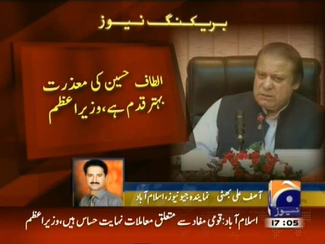 قومی مفاد سے متعلق معاملات نہایت حساس ہیں، قومی مفاد کے معاملات پر کچھ کہنے سے پہلے سوچنا، سمجھنا چاہیے، الطاف حسین کی معذرت بہتر قدم ہے، اس طرح کے غیر محتاط بیانات قومی اداروں کے وقار کو مجروح کرتے ہیں، وزیراعظم۔