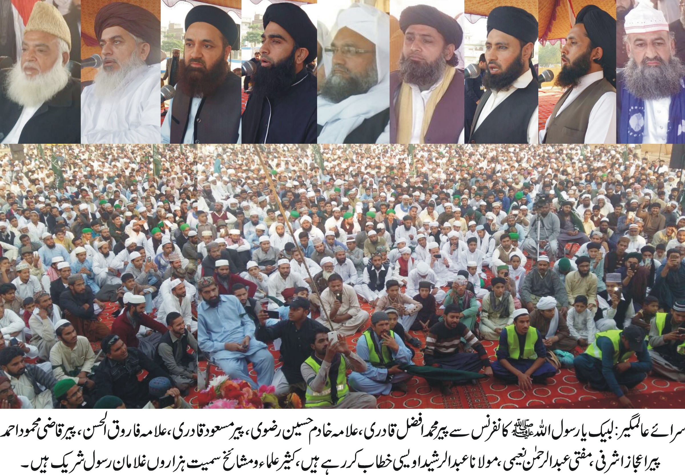 سرائے عالمگیر گجرات: دین اسلام اور وطن عزیز پاکستان کیخلاف کسی سازش کو کامیاب نہیں ہونے دینگے، تحفظ ناموس رسالتۖ، تحفظ عقیدہ ختم نبوت اور استحکام پاکستان ہماری زندگیوں کا مشن ہے۔ مقاصد پاکستان کی تکمیل اور فلاح دارین کیلئے ملک میں فوری نظام مصطفیۖ نافذ کیا جائے۔ تحریک لبیک یارسول اللہ ۖ کے زیراہتمام ٹینکی گراؤنڈ سرائے عالمگیر میں عظیم الشان ”لبیک یارسول اللہ کانفرنس” کے ہزاروں شرکاء سے قائدین کے خطابات۔ فضا اللہ اکبر اور لبیک یارسول اللہۖ کے نعروں سے گونجتی رہی۔ پیشوائے اہلسنت پیر محمد افضل قادری، شیخ الحدیث علامہ خادم حسین رضوی، مبلغ یورپ پیر مسعود قادری، پیر قاضی محمود احمد، علامہ فاروق الحسن، پیر اعجاز اشرفی، مفتی عبد الرحمن نعیمی، مولانا عبد الرشید اویسی، مولانا نعیم اختر، مولانا قاسم اکرم، اجمل منظور، راجہ افضال ودیگر نے خطابات کئے۔