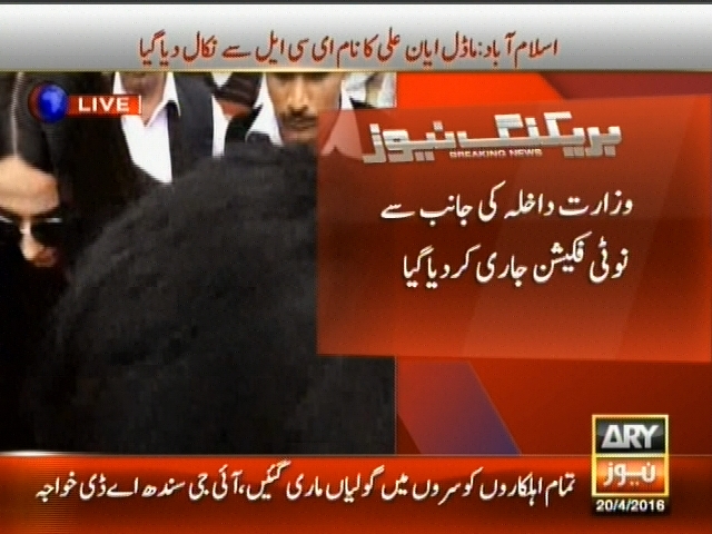 اسلام آباد : ماڈل ایان علی کا نام ای سی ایل سے نکال دیا گیا، وزارت داخلہ کی جانب سے نوٹی فکیشن جاری کر دیا گیا۔