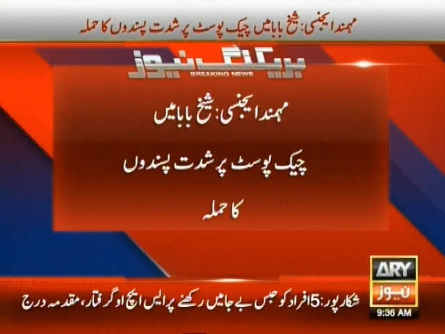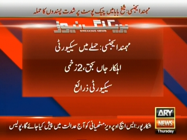 مہمند ایجنسی : شیخ بابا میں چیک پوسٹ پر شدت پسندوں کا حملہ، حملے میں سیکیورٹی اہلکار جاں بحق، 2 زخمی، سیکیورٹی ذرائع۔
