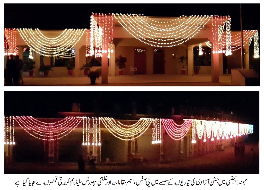 مہمند ایجنسی (سعید بادشاہ سے ) مہمندایجنسی، تاریخ میں پہلی مرتبہ سرحدی دیہات میں جشن آزادی نشانہ بازی کا مقابلہ خاصہ دار فورس اور حلیمزئی اپر مہمند نے سبقت حاصل کر لی۔ اسسٹنٹ پولیٹیکل ایجنٹس اور ونگ کمانڈر نے انعامات تقسیم کئے۔ کرکٹ ،والی بال ، فٹ بال اور دیگر مقابلے آخری مراحل میں داخل، غلنئی میں جشن آزادی مشاعرہ ۔ سانحہ کوئٹہ کے شہداء کے لئے خصوصی دعائیں ۔ یوم آزادی تقریبات کوئٹہ دھماکے شہداء کے احترام میں سادگی سے منانے کا فیصلہ۔ تفصیلات کے مطابق مہمند ایجنسی کے تینوں سب ڈویژنز میں جشن آزادی کے مختلف تقریبات اور سپورٹس مقابلے جاری ہیں ۔ جمعرات کے روز سرحدی دیہات بائزئی سب ڈویژن کے ہیڈ کوارٹر بہائی ڈاگ میں پولیٹیکل انتظامیہ اور ایجنسی سپورٹس اینڈ کلچر ڈیپارٹمنٹ کے زیر اہتمام بین الایجنسی بندوق نشانہ بازی کا مقابلہ ہوا۔جس کو دیکھنے کے لئے مقامی لوگوں اور ایجنسی کے تمام اقوام کے سرکردہ مشران اورمختلف مکاتب فکرافراد کی کثیر تعداد موجود تھی۔ جس میں تمام اقوام کے مشران ، لیویز ، خاصہ دار ، مہمند رائفلز، اے پی ایز پیر عبداللہ شاہ، حسیب الرحمن خلیل، نوید اکبر خان اور مہمند رائفلز 201 ونگ کمانڈرلیفٹنٹ کرنل امتیاز خان سمیت صحافیوں نینشانہ بازی میں حصہ لیا۔ جس میں ملک آیاز حلیمزئی نے دو نشانوں کو ، ملک عطاء اللہ ترگزئی، ملک زوتا خان اتمان خیل،ملک جہانزیب مہمند،مہمند پریس کلب کے صحافی لیاقت علی اورملک ثمر خان نے ایک ایک نشانے کو ٹارگٹ کیا۔نتائج کے مطابق قوم حلیمزئی نے اول ، قوم ترگزئی نے دوسری پوزیشن حاصل کر لی ۔فورسز کے شوٹنگ مقابلے میں خاصہ دار فورس نے اول ، مہمند رائفلز نے سیکنڈاور لیویز فورس نے تیسری پوزیشن پا لی۔اسسٹنٹ پولیٹیکل ایجنٹ بائزئی پیر عبداللہ شاہ، اسسٹنٹ پولیٹیکل ایجنٹ اپر مہمند حسیب الرحمن خلیل، اسسٹنٹ پولیٹیکل ایجنٹ لوئر مہمند نوید اکبر خان ، مہمند رائفلز کے ونگ کمانڈر لیفٹننٹ کرنل امتیاز خان اور ایجنسی سپورٹس منیجر سعید اختر نے انعامات تقسیم کئے۔ اسی طرح جمعہ کے روز ہیڈ کوارٹر غلنئی میں جشن آزادی مشاعرے کا اہتمام کیا گیا تھا۔ جس میں شعراء نے اپنے کلام پیش کیے۔ پولیٹیکل حکام بھی اس موقعہ پر موجود تھے۔ مہمند ایجنسی کے پولیٹیکل ایجنٹ محمود اسلم وزیر نے جاری جشن آزادی پروگرامزکے حوالے سے بتایا کہ ہر تقریب میں میں کوئٹہ دھماکے کے شہداء کی درجات کی بلندی اور ملک کی سلامتی اور امن کے لئے خصوصی دعائیں مانگی جاتی ہے۔ ملک کے دیگر علاقوں کی طرح مہمند ایجنسی کے عوام بھی اس بڑے المناک واقعے پر افسردہ ہیں ۔ اسلئے مہمند ایجنسی میں جشن آزادی شہدائے کوئٹہ کے احترام میں سادہ مگر پر وقار طریقے سے منائی جائیگی۔ جگہ جگہ پبلک اور اہم مقامات کو جھنڈوں سے سجاکر لوگ اپنے ملک سے محبت کا اظہار کرینگے۔