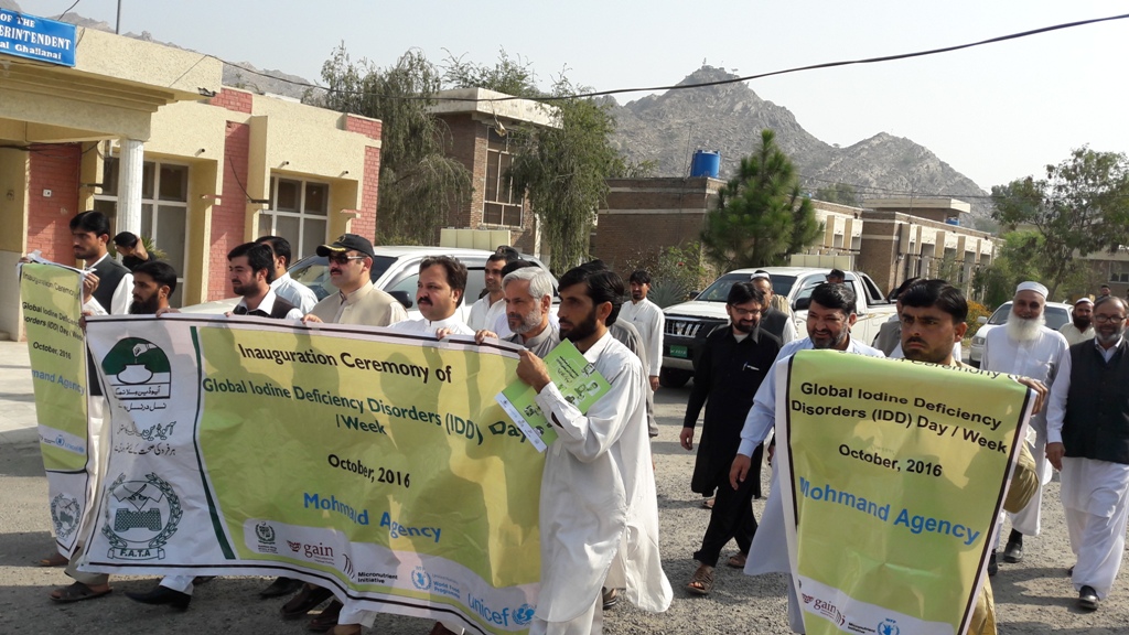 مہمند ایجنسی (شاہ محمود خان) مہمند ایجنسی کے ہیڈکوارٹر غلنئی میں آیوڈین کے عالمی ہفتے کے موقع پر محکمہ صحت اور یونیسیف نے آگاہی واک کا انعقاد کیا۔