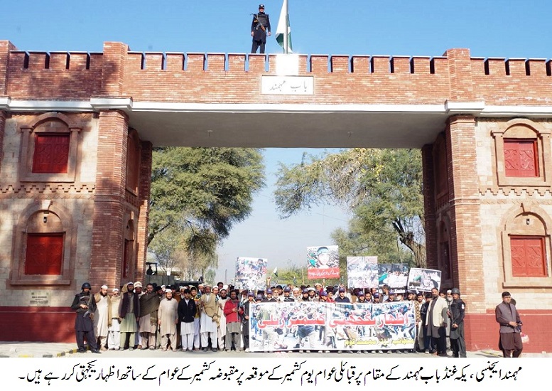 مہمند ایجنسی (سعید بادشاہ) مہمند ایجنسی کے تینوں سب ڈویژن میں یکجہتی کشمیر کے حوالے سے ریلیوں کا انعقاد۔ میاں منڈی، آٹا بازار اور یکہ غنڈ میں مقامی لوگوں اور عمائدین نے بینرز اور کتبے اٹھا کر پید مارچ کیا۔ ہندوستان کے خلاف نعرہ بازی۔کشمیر کی آزادی کیلئے قبائل ہر قسم کی قربانی کیلئے تیار ہیں۔ مظلوم کشمیروں پر ظلم و ستم کا سلسلہ بند کیا جائے۔ کشمیری عوام کو خود ارادیت کا حق دیا جائے۔