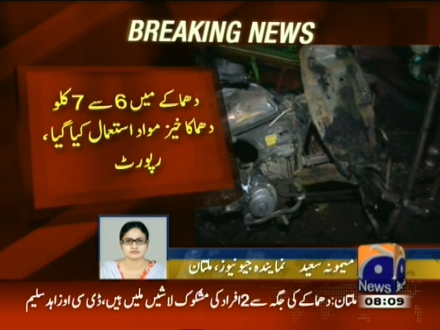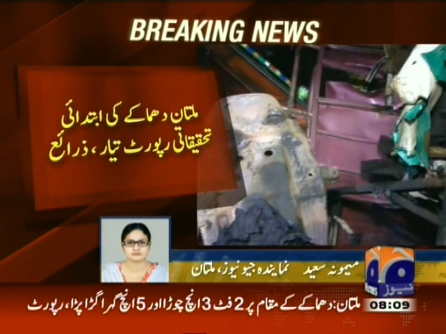 ملتان دھماکے کی ابتدائی تحقیقاتی رپورٹ تیار، دھماکے میں 6 سے 7 کلو دھماکا خیز مواد استعمال کیا گیا، دھماکے کے مقام پر 2 فٹ 3 انچ چوڑا اور 5 انچ گہرا گڑا پڑا، رپورٹ۔