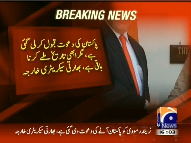 نئی دلی: نریندر مودی کو پاکستان آنے کی دعوت دی گئی ہے۔ پاکستان کی دعوت قبول کر لی گئی ہے، مگر ابھی تاریخ طے کرنا باقی ہے۔ بھارتی سیکرٹری خارجہ