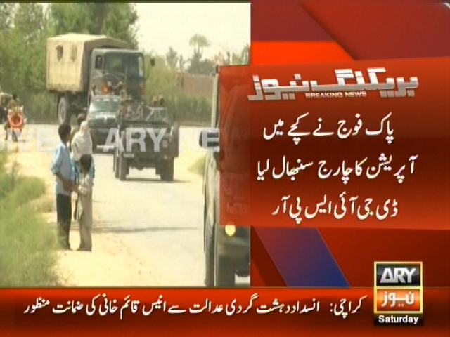 کچے میں آپریشن کیلئے پاک فوج کے دستے تعینات، پاک فوج نے کچے میں آپریشن کا چارج سنبھال لیا، پولیس اور رینجرز کی مدد سے پورے علاقے کا گھیراؤ کر لیا گیا، رینجرز اور پولیس پاک فوج کے ساتھ موجود رہیں گی، ڈی جی آئی ایس پی آر۔