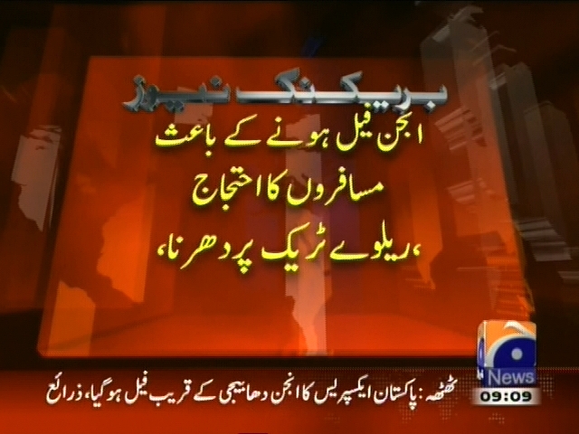 ٹھٹھہ : پاکستان ایکسپریس کا انجن دھابیجی کے قریب فیل ہو گیا، انجن فیل ہونے کے باعث مسافروں کا احتجاج، ریلوے ٹریک پر دھرنا۔