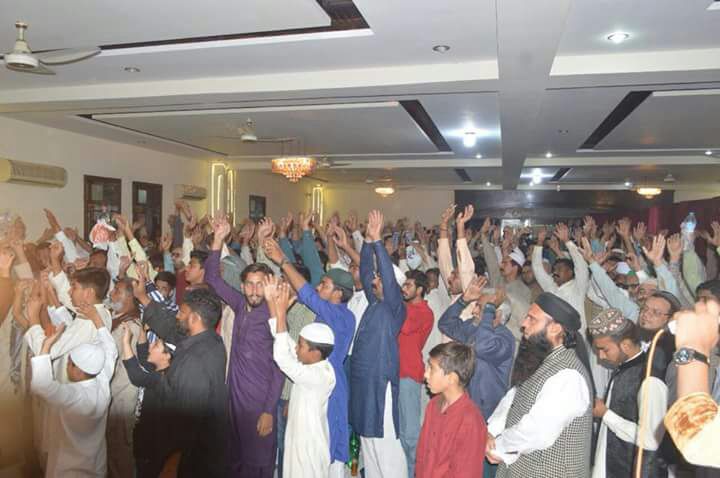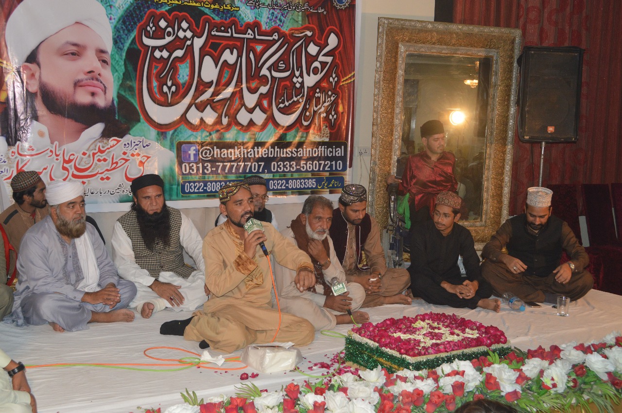 پیرس، لاہور (میاں عرفان صدیق) پاکستان کے شہر لاہور میں پیر آف بلاوڑہ شریف صاحبزادہ حق خطیب حسین علی بادشاہ سرکار نے ویڈیو لنک کے ذریعے خصوصی خطاب، دم ودعا فرمائی جس میں بڑی تعداد میں عاشقان رسول صلی الله علیہ و آلہ و سلم نے شرکت کی. نقیب محفل منور فرید قادری اور معروف نعت خواں محمد یعقوب نقشبندی، اویس امجد، محمد تنویر قادری، حافظ فرقان قادری اور علماء امن کمیٹی پنجاب کے چئیرمین تنویر حسین محمدی صاحب نے بھی اپنی حاضری پیش کی. محفل کے اختتام پر سرکار بادشاہ نے لوگوں کو اپنے دو مقاصد سے آگاہ کیا.