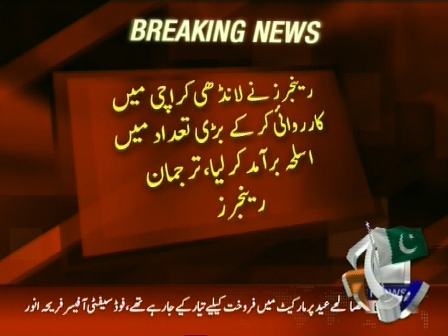 پاکستان رینجرز نے کراچی میں دہشتگردی کی بڑی کاروائی ناکام بنا دی، رینجرز نے لانڈی کراچی میں کاروائی کر کے بڑی تعداد میں اسلحہ برآمد کر لیا ، ترجمان رینجرز۔