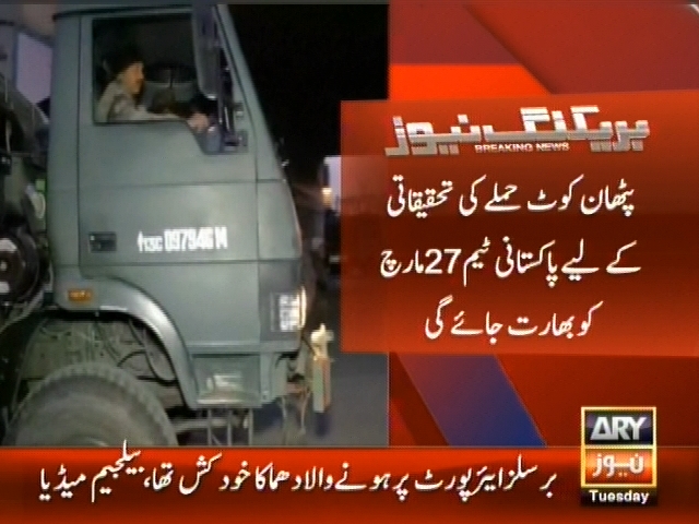 پٹھان کوٹ واقعہ، تحقیقاتی ٹیم نے ویزوں کی درخواست دے دی، پٹھان کوٹ حملے کی تحقیقات کے لیے پاکستانی ٹیم 27 مارچ کو بھارت جائے گی۔