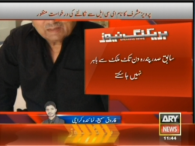 پرویز مشرف کا نام ای سی ایل سے نکالنے کی درخواست منظور۔ سابق صدر پندرہ دن تک ملک سے باہر نہیں جا سکتے۔