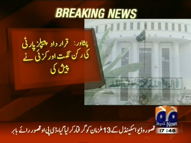 پشاور: خیبرپختونخوا اسمبلی میں قصور ویڈیو اسکینڈل کیخلاف متفقہ قرارداد منظور، قرارداد پیپلز پارٹی کی رکن نگہت اور کزئی نے پیش کی۔