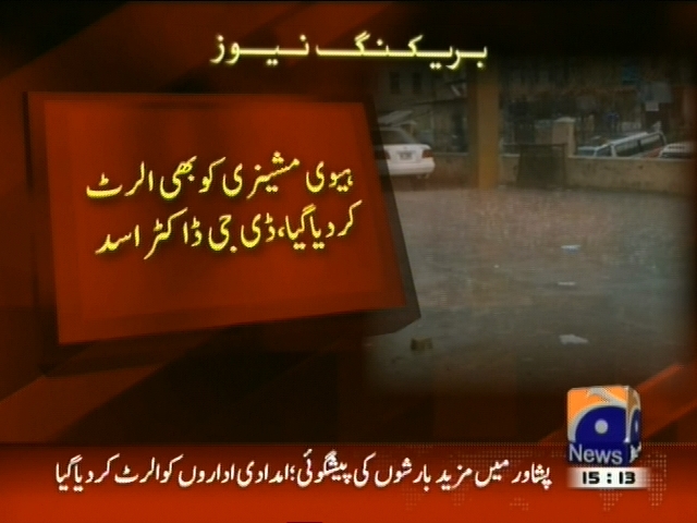 پشاور میں مزید بارشوں کی پیشگوئی، ریسکیو 1122 کو الرٹ کردیا گیا، ریسکیو عملے کی چھٹیاں منسوخ کر دی گئیں، ڈی جی ریسکیو 1122، چارسدہ روڈ اور حاجی کیمپ میں 16 ایمبولینسز پہنچادی گئیں، ہیوی مشینری کو بھی الرٹ کر دیا گیا، ڈاکٹر اسد علی۔