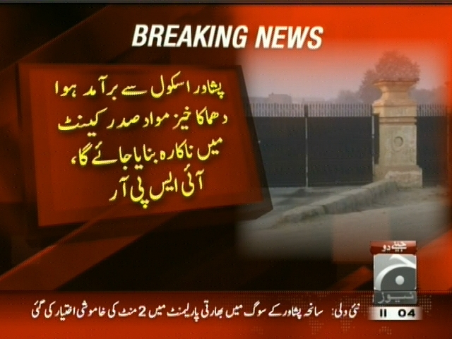 پشاور اسکول سے برآمد ہوا دھماکہ خیز مواد صدر کینٹ میں ناکارہ بنایا جائے گا، آئی ایس پی آر۔ عوام دھماکوں کی آواز سن کر پریشان نہ ہوں، آئی ایس پی آر۔