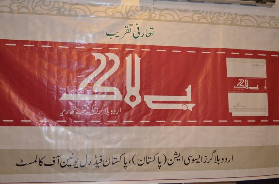 لاہور (پریس ریلیز) پاکستان فیڈریل یونین آف کالمسٹ (پی ایف یو سی) اور اردو بلاگرز ایسوسی ایشن کے زیر اہتمام مختلف بلاگرز کے بلاگوں پر مشتمل کتاب ”بے لاگ” کی تقریب پذیرائی الحمراء ہال نمبر 3 میں ہوئی جس میں دونوں تنظیموں کے عہدیداروں سمیت سینئر کالم نگاروں نے بھی شرکت کی۔