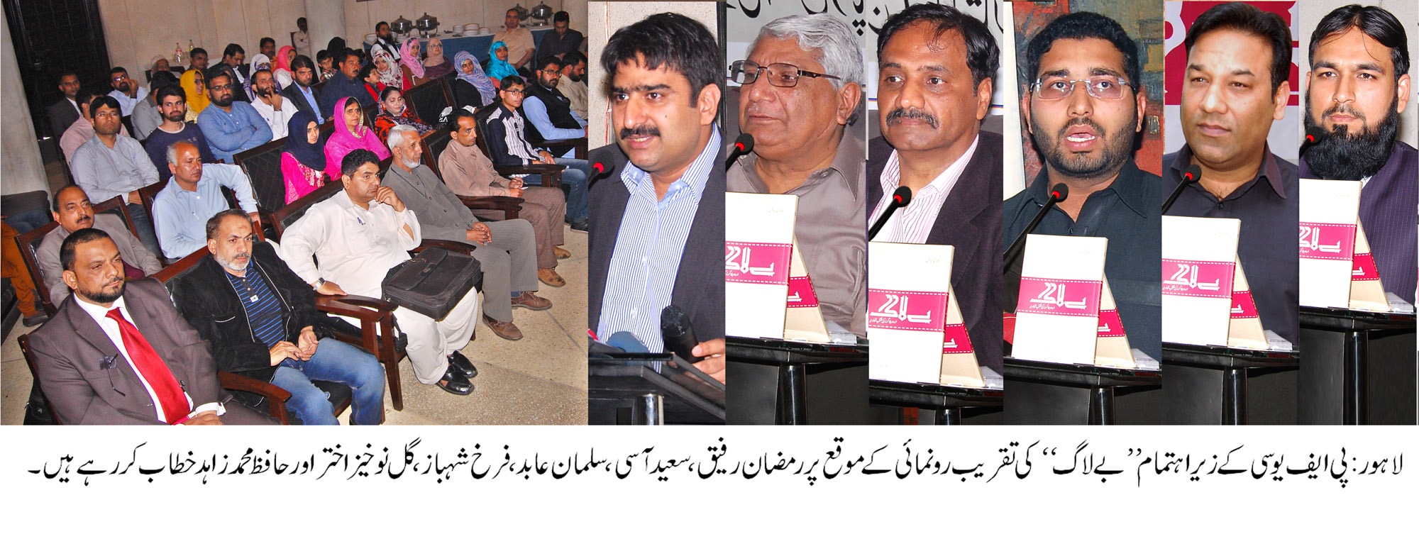 تقریب کی صدارت سینئر صحافی سعید آسی نے کی جبکہ سلمان عابد، عامر خاکوانی، گل نوخیز اختر، شہزاد چوہدری، صدر پی ایف یو سی فرخ شہباز وڑائچ ، کتاب کے مرتبین رمضان رفیق اور خاور کھوکھر سمیت دیگر نے شرکت کی۔ تقریب پذیرائی سے خطاب کرتے ہوئے مقررین نے کتاب ”بے لاگ” کو اردو ادب میں گرانقدر اضافہ اور قلمی کاوشیں کرنے والوں کیلئے راہنما کتاب قرار دیا اور کہا کہ اردو کی ترویج و ترقی کیلئے ایسی کتب کا ہر ہاتھ میں ہونا انتہائی ضروری ہے جو نہ صرف لکھنے والوں میں مطالعے کی لگن پیدا کریں بلکہ ان کی سوچوں کو بھی وسعت دینے میں معاون ثابت ہو۔