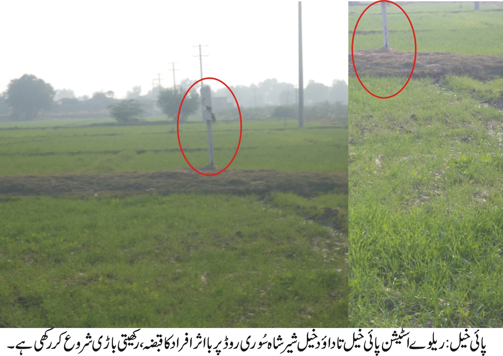 پائی خیل (نامہ نگار)پائی خیل ریلوے اسٹیشن تادائودخیل شیرشاہ سُوری روڈپربااثرافرادکاقبضہ تعمیرات اورکھیتی باڑی شروع کررکھی ہے ۔تفصیلات کے مطابق پائی خیل اڈاریلوے اسٹیشن تاگورنمنٹ بوائزہائی سکول پائی خیل ،جانوخیل ،ٹھٹھی شریف تادائودخیل تقریباً20کلومیڑشیرشاہ سُوری روڈپربااثرافراد نے قبضہ جماکر مکانوں کی تعمیرات اورکھیتی باڑی شروع کررکھی ہے اورروڈپرجان بوجھ کرروکاوٹیں کھڑی کررکھی ہیں تاکہ روڈمکمل بندرہے اورآمدورفت نہ ہوجس سے شہری آبادیوں میں روڈمکمل طورپرسکڑچکاہے جس کے نتیجہ میں ٹریفک کاچلنامحال ہوچکاہے عوامی وسماجی حلقوں نے ڈپٹی کمشنرمیا نوالی سے روڈقبضہ مافیا سے واگزار کرکے روڈکوبحال کرنیکامطالبہ کیاہے۔