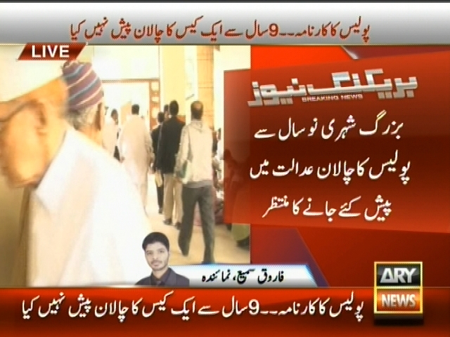 پولیس کا کارنامہ، 9 سال سے ایک کیس کا چالان پیش نہیں کیا، بزرگ شہری نو سال سے پولیس کا چالان عدالت میں پیش کئے جانے کا منتظر، پولیس کا کام عدالت میں 14 دن میں چالان جمع کرانا ہے۔