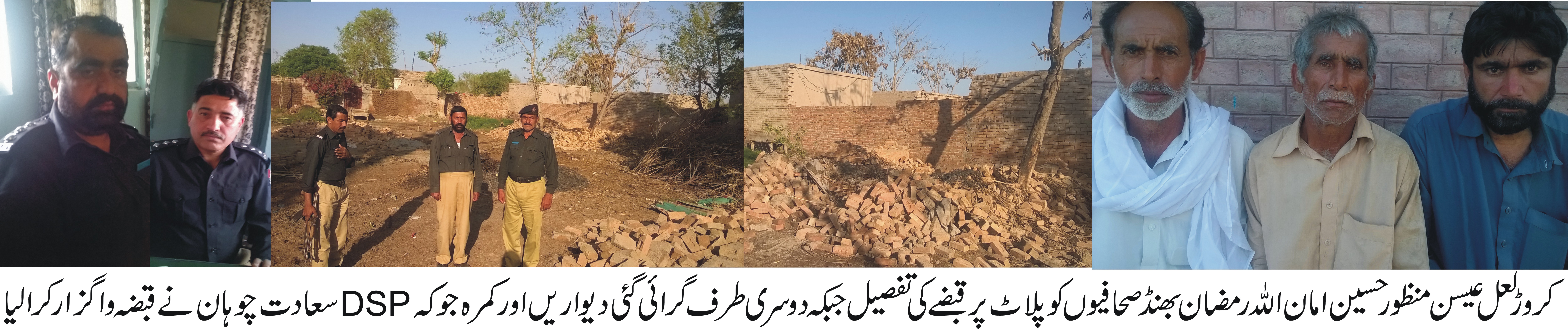 ٍکروڑلعل عیسن (نامہ نگار) سابق صوبائی وزیر احمد علی اولکھ کے ایماء اور پولیس کی ملی بھگت سے اسلحہ سے لیس 50 کے قریب افراد نے غریب شخص کا ملکیتی مکان گراکرچھت کے سامان کو آگ لگا دی اور قبضہ کی کوشش اور فائرنگ کرتے رہے، اعلیٰ حکام کی ہدایت پر ڈی ایس پی چوبارہ سعادت چوہان نے نفری کے ہمراہ موقع پر پہنچ کر قبضہ گروپ کے 42افراد کو گرفتار کے کے قبضہ سے پمپ ایکشن ،رپیٹر ،پسٹل اور 12بور بندوق برآمد کرلی جبکہ مدعی گروپ کے 5افراد کو بھی گرفتار کر کے حوالات میں بند کردیا گیامقدمات درج تفصیل کے مطابق منظور حسین ولد سکندر قوم بھنڈبلوچ سکنہ کروڑ نشیب کھاتہ نمبر 19میں17مرلے کا مالک بتایا جاتا ہے جس نے کچھ عرصہ پہلے پلاٹ پر مکان اور چاردیواری تعمیر کر کے رہائش رکھی ہوئی تھی۔منظور حسین امان اللہ ،مرتضیٰ اور رمضان بھنڈنے صحافیوں کو بتایاکہ گزشتہ روز لالو خان قوم بھنڈ بلوچ جس کا کھاتہ ہذا میں ایک مرلہ بھی نہ ہے انہوں نے الزام عائد کیا کہ میرے پلاٹ پر قبضہ کرنے کی خاطرہمارے خلاف کروڑ پولیس کی ملی بھگت اور سابق صوبائی وزیر کے ایماء پر ہماری 6خواتین اور 14افراد کے خلاف جھوٹی اور بے بنیاد 94/16ایف آئی ار درج کرائی جو کہ بدنیتی پر مبنی ہے جرم 148/149 341/506 447/511لگادیا گیا من سائل اپنے بھائیوں بھتیجوںکی ضمانت کے لئے عدالت میں موجود تھا اور ضمانت کرائی ،اس دوران اطلاع ملی کہ مختار حسین ،نصراللہ خان،ایسی خان،اشرف خان سیف اللہ،مہر خان ،محمد آصف وغیرہ 50کے قریب افراد نے جوکہ آتشی اسلحہ سے مسلح تھے نے میرے گھر پر حملہ کر کے چار دیواری گرادی اور چھت کاسامان جلا دیا۔ چار دیواری کے نیچے میرے آڑھائی سالہ اور 8ماہ کی عمر ی دو پوتیاں نیچے آکر شدید زخمی ہو گئیں مذکورہ افراد نے زبر دست فائرنگ اور خواتین کو زبر دستی گھر سے گھسیٹ کر دھکے دیکر نکال دیا اور زوکوب کرتے رہے جس سے ان کے کپڑے پھٹ گئے پولیس کو اطلاع دی جوکہ کافی دیر بعد موقع پر پہنچی انہوں نے سابق صوبائی وزیرملک احمد علی سمیت کروڑ پولیس پر الزام عائد کیا کہ یہ سب کچھ اُن کی ایماء پر کیا جا رہا ہے انہوں نے اعلیٰ حکام خصوصا DPOلیہ اور DSPچوبارہ سعادت چوہان کا شکریہ ادا کیاکہ انہوں نے بروقت کاروائی کر کے معاملے کو کنٹرول کر لیا ۔SHOکروڑ ملک ریاض نے اپنے خلاف لگائے گئے الزامات کی تردید کی اُن کے مطابق قبضہ گروپ کے افراد نے کھلم کھلا بدمعاشی کی جن کے42افراد کو گرفتار کے کے قبضہ سے پمپ ایکشن ،رپیٹر ،پسٹل اور 12بور بندوق برآمد کرلی اور دوسرے گروپ کے 5افراد کے خلاف مقدمات درج کرلئے گئے ہیں ۔پولیس نے 13(2/65,148/149,373) 11B کے دفعات لگا کر ملزمان کو جوڈیشل بھجوا دیا۔