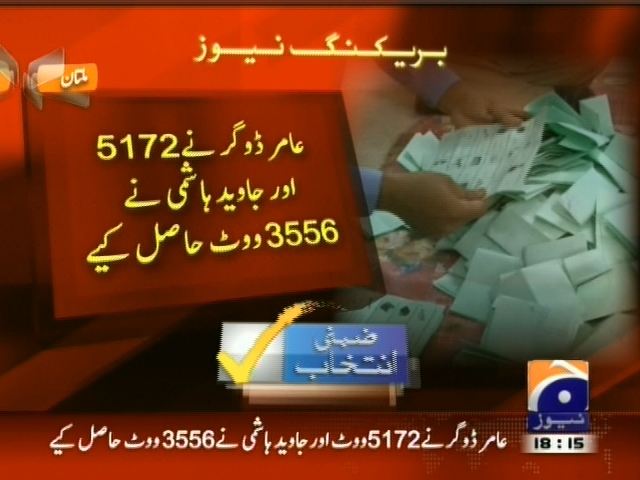 این اے 149 : 25 پولنگ اسٹیشن کے مکمل نتائج موصول، عامر ڈوگر نے 5172 اور جاوید ہاشمی نے 3556 ووٹ حاصل کیے۔