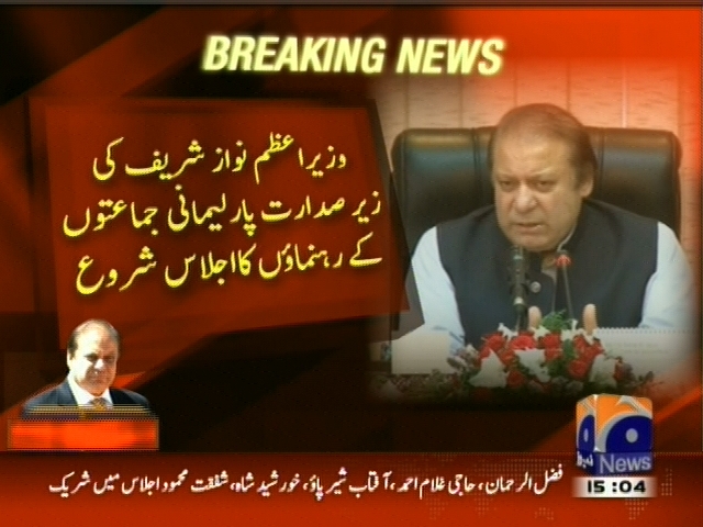 وزیراعظم نواز شریف کی زیرصدارت پارلیمانی جماعتوں کے راہنماؤں کا اجلاس شروع، اجلاس میں ہارس ٹریڈنگ پر قابو پانے کے کیے آئین یا قوائد میں تبدیلی پر مشاورت۔