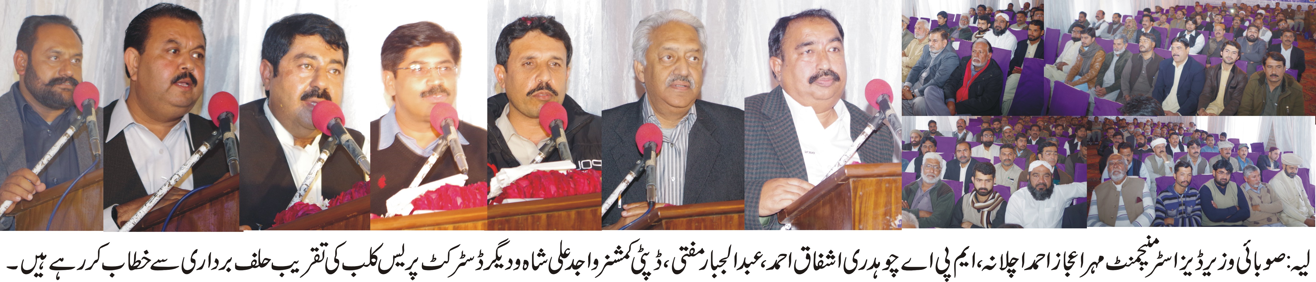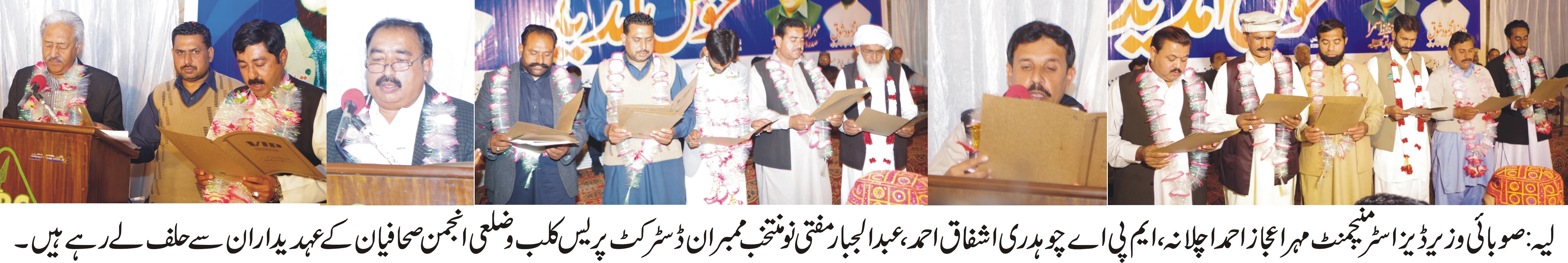 لیہ (محمد صدیق پرہار سے) حکومت پنجاب صحافیوں کی فلاح و بہبود اور میڈیا ہاوسز کی سیکورٹی کے لیے بھرپور اقدامات عمل میں لا رہی ہے کیونکہ ذرائع ابلاغ کی مثبت، تعمیری و بامقصد رپورٹنگ سے ہی مسائل کی نشاندہی اور حل کرنے میں نمایاں مدد ملتی ہے۔ یہ بات صوبائی وزیر ڈیزاسٹر مینجمنٹ مہر اعجازاحمد اچلانہ نے ڈسٹرکٹ پریس کلب لیہ وضلعی انجمن صحافیان کے نومنتخب عہدیداران کی تقریب حلف برداری سے خطاب کرتے ہوئے کہی ۔تقریب میں ایم پی اے چوہدری اشفاق احمد ،ایم پی اے شہاب الدین خان،ڈپٹی کمشنر واجد علی شاہ ،چیئرمین ضلع کونسل ملک عمر علی اولکھ ،چیئر مین ایم سی لیہ حافظ محمد جمیل ،وائس چیئرمین نور محبوب میلوانہ ،سیدگلزار حسین شاہ بخاری ، سابق ایم پی اے چوہدری اصغر علی گجر،تاجر نمائندوں ،وکلاء ،پروفیسرز، سرکاری افسران ،سیاسی و سماجی کارکنوں ،معززین شہروذرائع ابلاغ کے نمائندوں نے کثیر تعدا د میں شرکت کی۔تقریب سے خطاب کرتے ہوئے صوبائی وزیر نے کہا کہ علاقائی تعمیر وترقی کے لیے میڈیا کا رول کلیدی اہمیت کاحامل ہے اس لیے صحافی اپنی ذمہ داریاں احسن طریقہ سے سرانجا م دے کر عوام کے حقیقی مسائل کو اجاگر کرتے ہوئے حل کو یقینی بناسکتے ہیں ۔صوبائی وزیر نے ڈسٹرکٹ پریس کلب کے ترقیاتی منصوبے کے لیے ایم پی اے گرانٹ سے فنڈز کی فراہمی کا اعلان کیا ۔تقریب سے خطاب کرتے ہوئے ایم پی اے چوہدری اشفاق احمد نے کہا کہ ضلع لیہ کی صحافی برادری نے تعمیر وترقی کے لیے ہمیشہ مثبت رول ادا کیا ہے ۔انہوں نے ڈسٹرکٹ پریس کلب کے ہال کی تعمیر کے لیے فنڈز کی فراہمی کا اعلان کیا۔تقریب سے خطاب کرتے ہوئے ڈپٹی کمشنر واجدعلی شاہ نے کہا کہ موجودہ حالات میں لیہ پریس نے ہمیشہ تعمیری کردار ادا کیا ہے اور ملکی مفاد کومدنظر رکھتے ہوئے کسی بھی فلاحی مہم کو کامیاب بنانے کے لیے انتظامیہ کے ہاتھ مضبوط کیے ہیں۔صدر جنوبی پنجاب جرنلسٹ ایسو یسی ایشن و صدر ٹی وی جرنلسٹ ملتان ،دانشور کالم نگار صحافی عبدالجبار مفتی نے اپنے صدارتی خطاب میں کہا کہ صحافی معاشرے کی آنکھ کان ہوتے ہیںجو حقیقی عکاسی کر کے سیاسی قیادت و انتظامی افسران کی توجہ تعمیروترقی کے لیے اور مسائل کی نشان دہی کرکے دلاتے ہیں جن کی کاوشوں سے ترقی کی نئی راہیں کھلتی ہیں ۔انہوں نے ڈسٹرکٹ پریس کلب کی ضروریات کو پوراکرنے کے لیے صحافی برادری کو اپنے وسائل سے استفادہ کے لیے بھی تجاویز دیں۔تقریب میں صدر پریس کلب چوک اعظم غلام رسول اصغر کی صحت یابی کے لیے قاری کفایت اللہ نے دعاکرائی ۔تقریب میں صدر ڈسڑکٹ پریس کلب لیہ مہر ارشد حفیظ سمرا نے سپاس نامہ پیش کیا۔قبل ازیں صوبائی وزیر نے نو منتخب ممبران ڈسٹرکٹ پریس کلب سے اور ایم پی اے چوہدری اشفاق احمد نے نو منتخب ممبران ،ضلعی انجمن صحافیان کے عہدیداران سے جبکہ عبدالجبار مفتی نے صدر ڈسٹرکٹ پریس کلب لیہ مہر ارشد حفیظ سمرا سے ان کے عہدے کا حلف لیا۔تقریب میں کالم نویس ادیب جمشید ساحل، صابر عطاتھہیم، نیازحسین شاہ گیلانی، عنائت اللہ خان، محمدصدیق پرہار، ملک سلیم ریلا، محمد اقبال قریشی ، غلام فرید سیال سمیت صحافیوں اور معاشرہ کے دیگر طبقات سے وابستہ سینکڑوں افراد نے شرکت کی۔