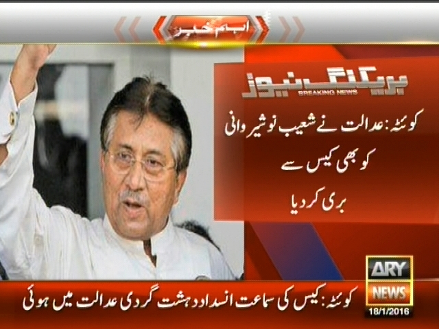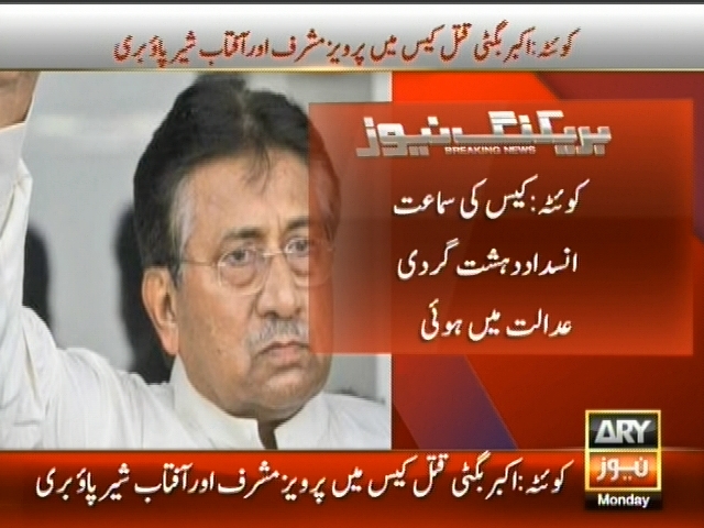 کوئٹہ : اکبر بگٹی قتل کیس میں پرویز مشرف اور آفتاب شیر پاؤ بری، عدالت نے شعیب نوشیروانی کو بھی کیس سے بری کر دیا، کیس کی سماعت انسداد دہشت گردی عدالت میں ہوئی۔
