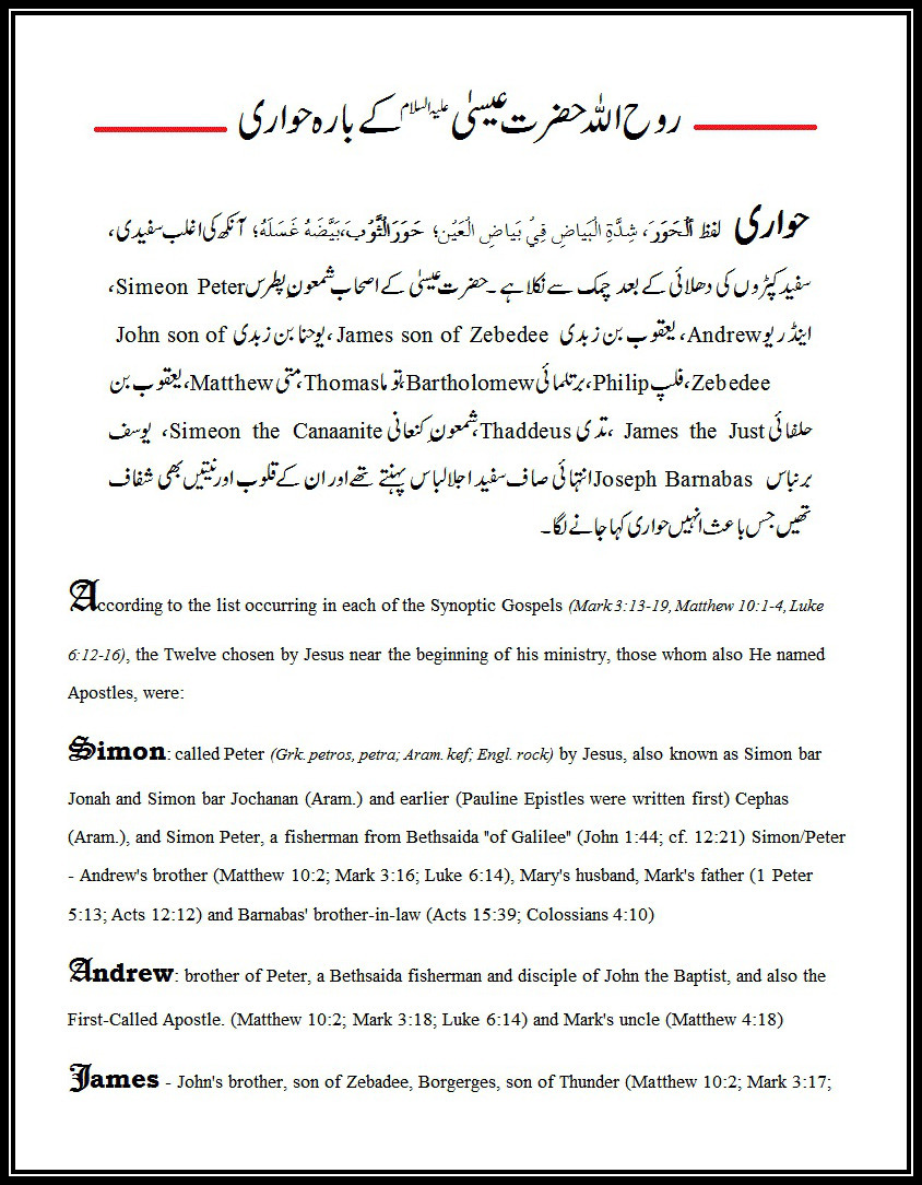 اسلام آباد : انصار اللہ ؛ حضرت عیسیٰ روح اللہ کے بارہ حواری از ڈاکٹر سید علی عباس شاہ۔