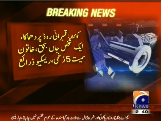 کوئٹہ: قمبرانی روڈ کے قریب دھماکہ۔ کوئٹہ: قمبرانی روڈ کے قریب دھماکہ، ایک شخص جاں بحق، خاتون سمیت 5 زخمی، ریسکیو زرائع۔